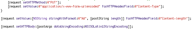 Lösningen som faktiskt både blev snabbare och stabilare var att göra det kompletta REST gränssnittet i mitt verkliga J2EE backend och jobba direkt mot det. Sedan visade det sig även att NSMutableRequest gjorde rätt som jag trodde från början och nu är hela REST anropen implementerade utan allt för stora bekymmer.